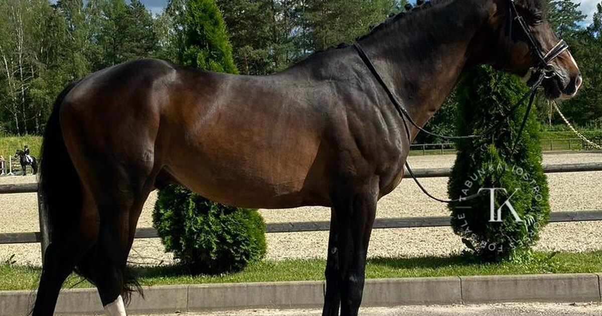 Очень общительный, любит компанию и контакт с человеком. Хорошо сложен, имеет три правильных аллюра, яркие боковые, качественный шаг, менки сырые, очень гибкий. Уровень подготовки: ППЮ В, регулярно в призах. Находится в работе у МС. Очень нравится судьям. Имеется красный паспорт и паспорт спортивной лошади.