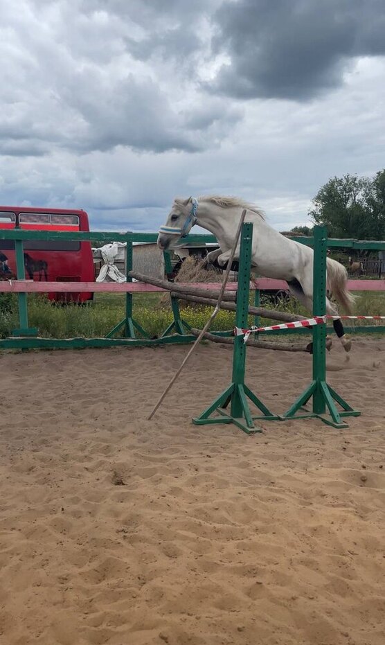 На свободе напрыган до 125 см, под всадником 105. Маршруты на соревнованиях прыгал до 90 см( может выше), прыгает с желанием. Остаётся в призах под всадниками разного уровня, так же под арендой. Скоростной самовоз, на всех скачках для пони остаётся победителем. Выезды в поля, знаком с троеборными барьерами, запрягается в ватрушку, катает маленький детей.