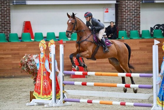 Стартовый опыт в конкуре с высотой препятствий до 115 см. Очень перспективна на высотные маршруты. Супер надёжная.