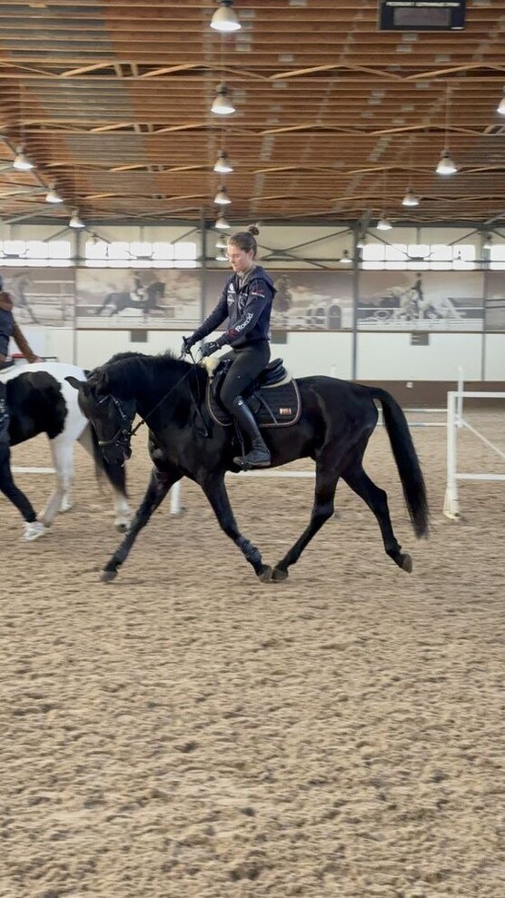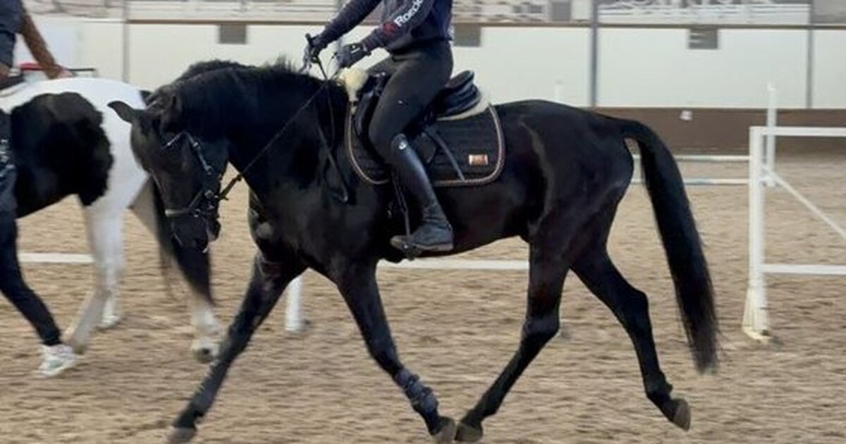 Базово выезжен. Приятный, стабильный контакт в два повода, мягкий и на шенкель. Прыгает маршрутики до 60 см., в конкурном тренинге с октября 2025 года. Детей возит прекрасно, работает в манеже с большим количеством лошадей, ничего не боится.