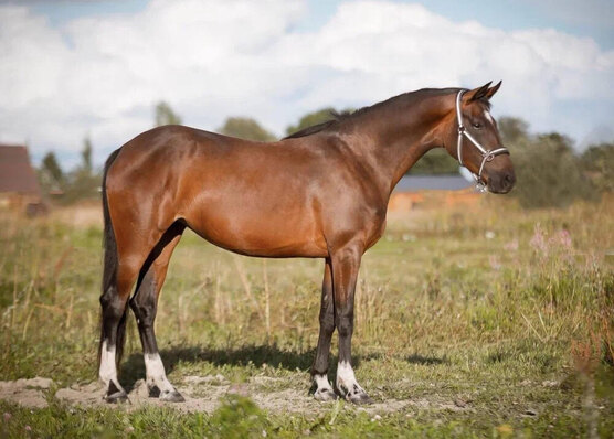 На просторных правильных аллюрах, толкучий зад, крепкая и крупная. Перспективна в классические дисциплины конного спорта.