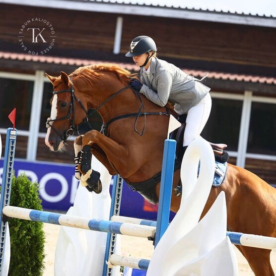 Внук Cor de la Bryere. Ничего не боится. Стартовый опыт до 120 см. Подойдет под ребенка. Прыгает из любого положения. Имеется свежий вет.чек.