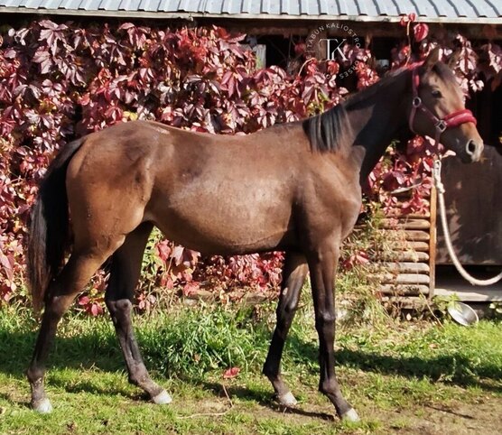 Кобыла. Гнедой масти. 2024 года рождения. Отец - Хьюго Биг Босс, английский чистокровный жеребец линии Секретариата и Нежинского (Канада), мать - Овация, тракено - донской помеси.