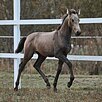 Выраженные спортивные движения, баланс и свобода плеча, средний/средний-короткий корпус. Чётко передал экстерьерную линию отца и барочность матери Paco Marti.