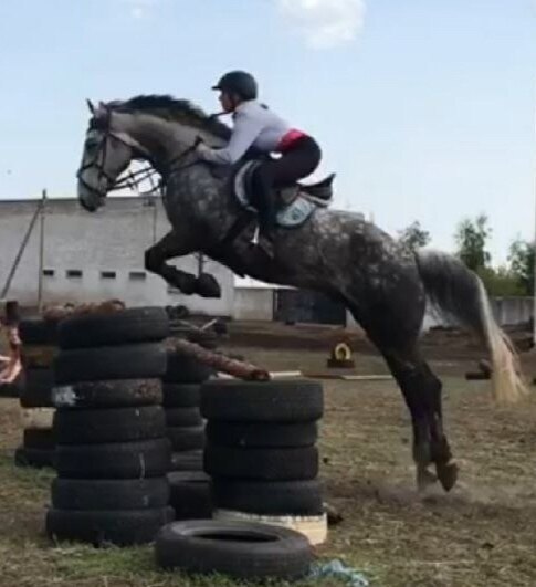 Старты - маршруты до 100 см, Детские езды. Дома - маршруты до 110 см, одиночные до 130 см, элементы Юношеских езд (кроме менки). Хорошо выезжен под руководством КМС. Стабунен. Спокойный, уравновешенный.