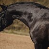 Великолепная вороная кобыла, крупная и широкая, барочного типа. Базово заезжена в 5 лет. Жеребилась, сейчас стоит с жеребенком, отъем в декабре 2025. После отъема жеребенка будет втягиваться в верховой тренинг. Хороший характер.