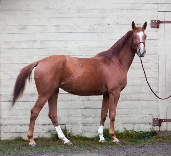 Кобыла тракененской помеси 2021 г.р., рост 166 см.