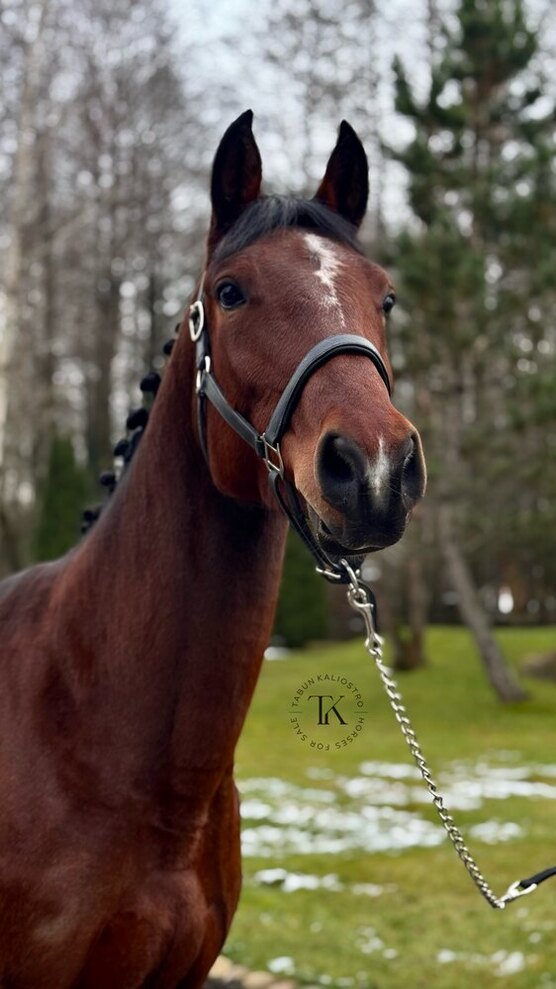 Кобыла. Спортивной полукровной породы. 157 см в холке. 2020 года рождения. В родословной имеется: Stakkato, Stenograph, Falstaff, Экономика, Хоккей.