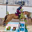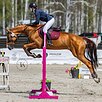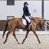 Стартовый опыт до 110 см, дома до 115 см, в гимнастике до 135 см, выше не ставили. Уровень подготовки: три аллюра, уступки, плечи, повороты на заду, менки в воздухе спокойно, осаживания, контргалоп, сырые принимания на шагу. Стартовый опыт в троеборье ЛК100. Не имеет денниковых пороков, куется, колется, без проблем заходит в коневоз, ничего не боится.
