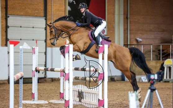 • Полукровной породы. Отец KWPN. Постоянно стартует по высотам до 130 см включительно. Дома работает связки 140, одиночные до 150.