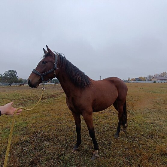 Недавно заезжена. Спокойная, общительная, на корде бегает, за человеком тянется. Знает пастух, гуляет в компании.