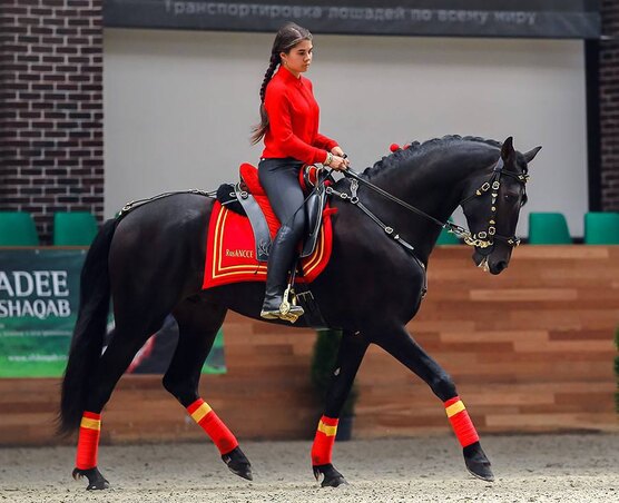 - Физическом состоянии лошади. Для меня важно, чтобы лошадь была сильной и могла нести нагрузку ни только костями, но и мышцами, что сохраняет в несколько раз продолжительность её спортивной карьеры. Первостепенно наращиваем базу, мышцы спины, определяем вместе с физиотерапевтом сильные и слабые стороны физического состояния лошади. Подбираем оптимальный тренинг.