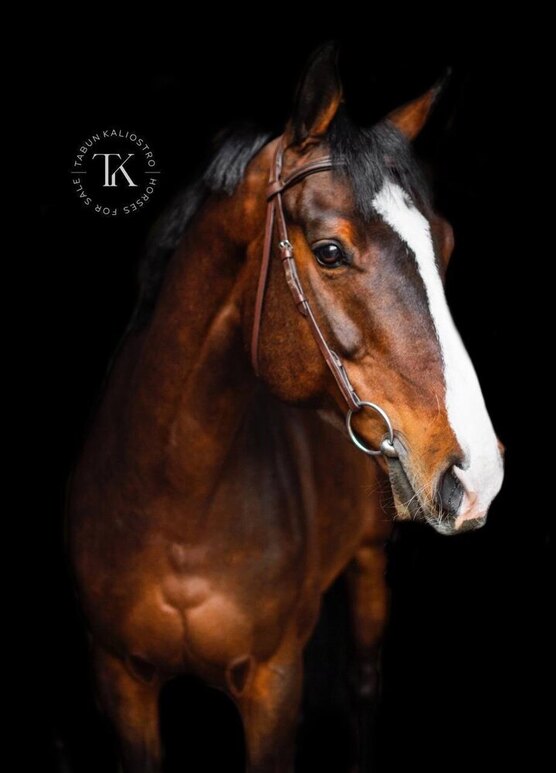 В 2 года был привезен из Европы, все время в одних руках. Очень добрый, спокойный, немного флегматичен. Стартовый опыт до 110 см, дома прыгает 120 - 130 см. В данный момент работается в выездку. Можно доверить ребенку и начинающему.