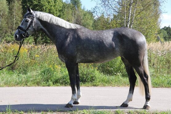 Отец - Black Swan, лицензированный немецкий спортивный жеребец линии Balou du Rouet/Cornet Obolensky.