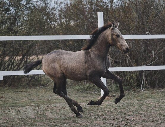 Жеребчик тёмно-буланой масти, перспективен для выездки и Working Equitation. Высокие племенные ценности и редкая масть — хорошая капитализация в разведении.