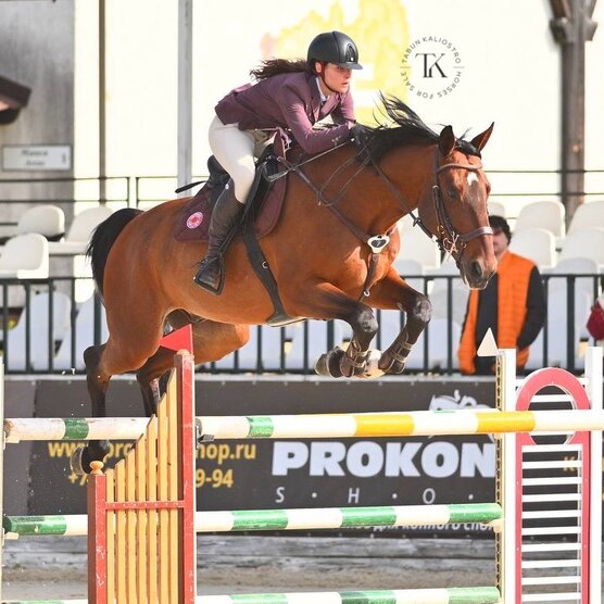 Сильный и честный. Стартовый опыт до 145 см. Подойдет под любого всадника для выхода на высоты. Имеет большой стартовый опыт в Европе и в России.