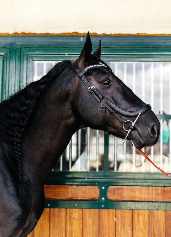 Недавно в спортивном тренинге. Мягкий на рот и шенкель. Судя по прогрессу в работе, будет очень интересным. Работается в конкур, напрыгивается в шпринте.