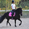 Идеальная пони для обучения малышей. Бегает все детские езды (делает уступки, плечи, повороты на заду). Катает всех и везде, большой стартовый опыт. Можно доверить ребенка в лес/поле (замечательно ходит как первым номером, так и в смене), очень безопасная. Довольно флегматична.