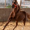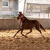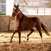 Старательный в работе, быстро учится. Не форсируется. Спокойно расчищается, знает уздечку, корду, приучен к развязкам. Обладает приятными движениями и хорошим прыжком. Готовиться к заездке потихоньку. Характер активный.