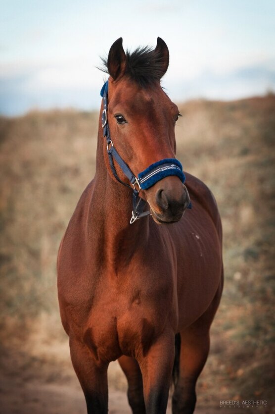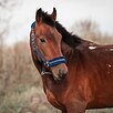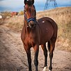 Гнедой масти, 161 см в холке. Небольшой, аккуратный и при этом достаточно широкий. Удобно ездить верхом даже всаднику ростом 170 см.