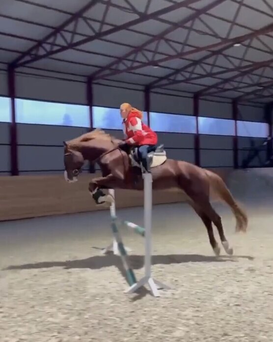 Старты - маршруты до 70 см. Дома - одиночные до 100 см. Прыгает любые заложения. Обладает железобетонной психикой, не боится раздражителей, техники. Очень контактный, абсолютно не жеребцует.