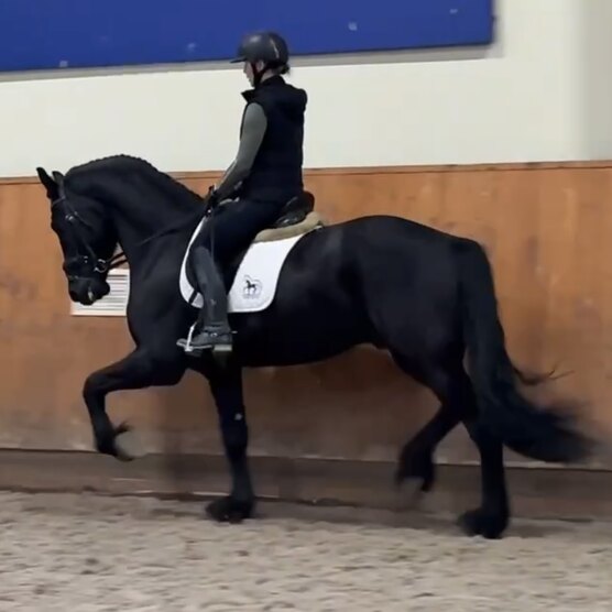 Жеребец. Фризской породы. Вороной масти. 166 см в холке. 2022 года рождения. Отец - Gerben 479 (sport), мать - Mare - Anne (ster). Импортирован из Нидерландов. В родословной имеется: Jorn 430 sport-elite, Jasper 366 sport elite pref.