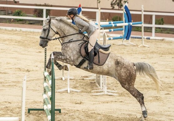 Старты - маршруты до 120 см. Дома - одиночные до 140 см, шпринт до 160 см. Прыгает все, выручает, смело идет на любые барьеры. Стартует с колес, работает на всех площадках. Абсолютный победитель 6-летних лошадей по Самарской области. Сильная, активная, но при этом адекватная и безопасная. Ездила 15-летняя девочка, спокойно прыгала до 120 см.