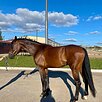 Стартовал 120, шпринт 150, выше не ставили. Абсолютно спокойный, не заводится, ничего не боится, на барьеридет уверено. Готов учиться новому, схватывает все на лету. Челокоориентированный, ходит за всеми хвостиком, в левадах гуляет со всеми, ни разу не отбивал, не кусал. Очень аллюристый, галоп с захватом, рысь и шаг с заступом.