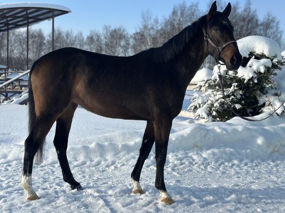 В продаже кобыла, 2023 г.р. тракено-ганноверская помесь. 160 в холке, активно растет. Обладает хорошими продуктивными движениями, техничным прыжком.