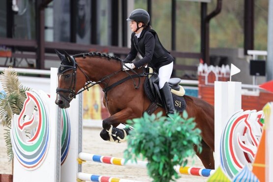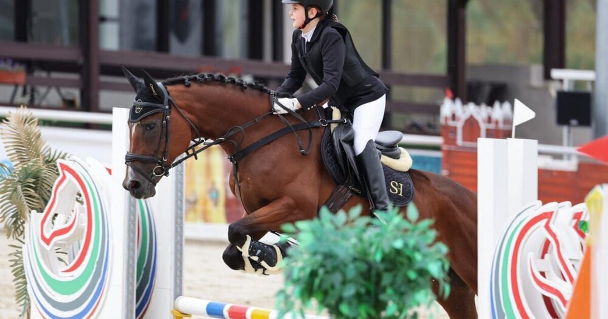 Напрыгана до 120 см. На данный момент стартует по маршрутам 100 см., готовится выше. Не форсируется.