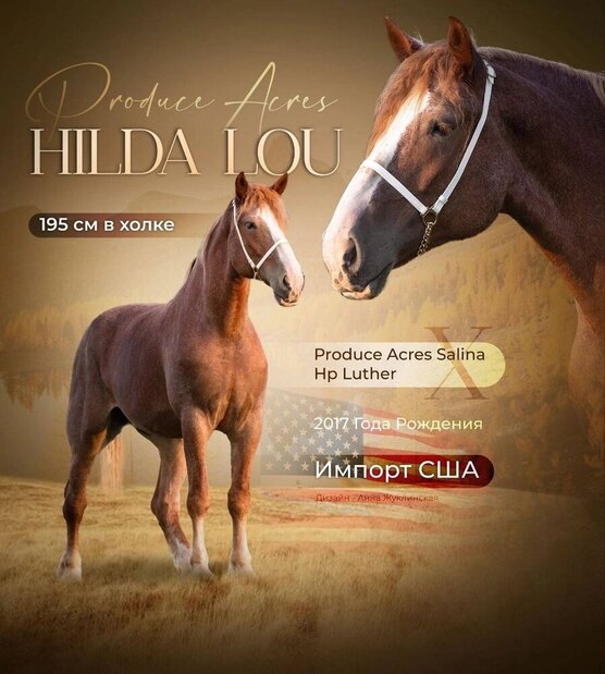 Кобыла Hilda Lou 2017 года рождения, 195 см. в холке. Импортирована из США.
