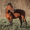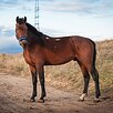 Гнедой масти, 161 см в холке. Небольшой, аккуратный и при этом достаточно широкий. Удобно ездить верхом даже всаднику ростом 170 см.