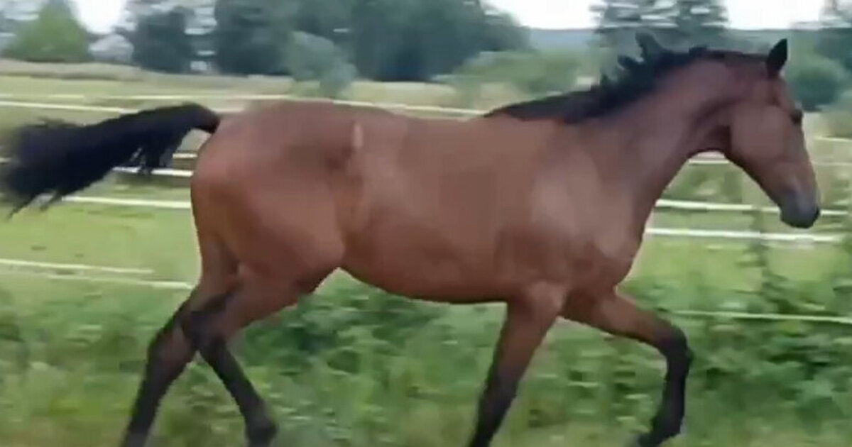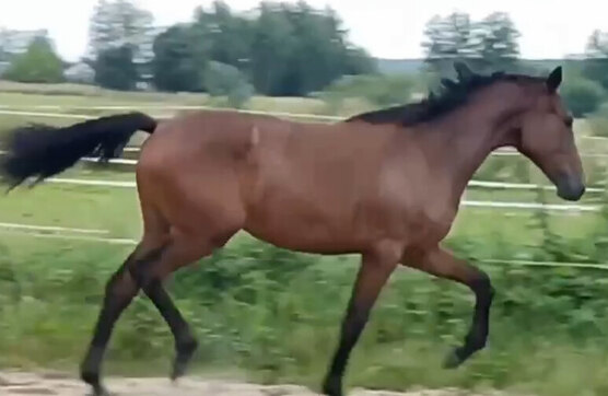 Кобыла. Голштинской породы. Гнедой масти. 157 см в холке, ожидаемый рост 170+ см в холке. 2024 года рождения.