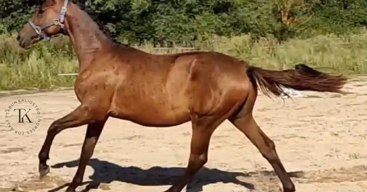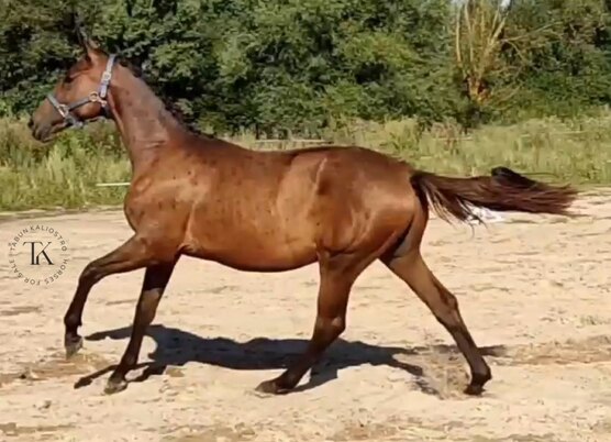 Жеребец. Голштинской породы. Гнедой масти. 158 см в холке, ожидаемый рост 170+ см. 2024 года рождения. Линия Cor de la Bryere.