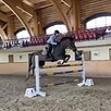 Старты - маршруты до 120 см (под ребенком), всегда в призах. Дома - связки до 130 см; знает уступки, менки в 2-3 темпа. Честный, скоростной, очень аккуратный. Не смотрящий, прыгает барьеры любой конфигурации. Управляется голосом, безопасный. Находится в тренинге у МС. Любого поднимет с нуля до высот.