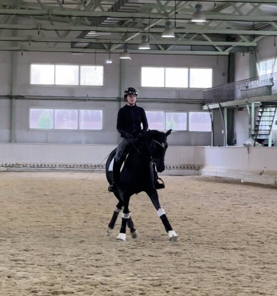 Кобыла полукровная (?отец-Английская Чистокровная, мать-Русская рысистая)вороная, 2016 гр, готова на юношеские езды, плюс из малого круга легко делает контрпринимания на галопе, чистые менки в 4-3-2 темпа, шикарная рысь, чистые галоп и шаг.