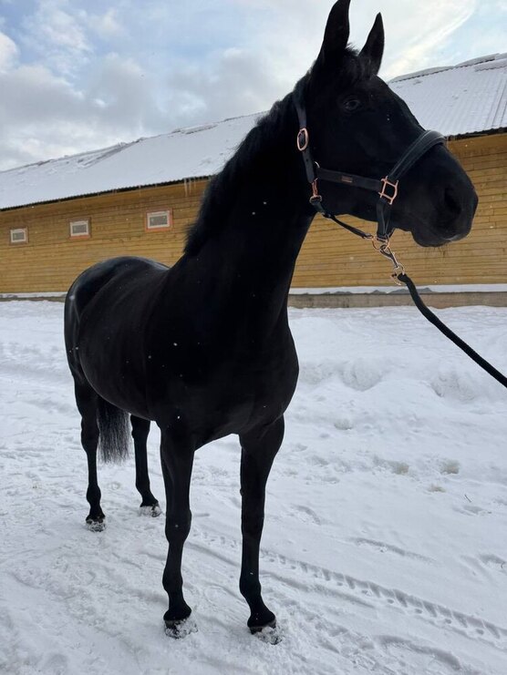 Универсальная, будет интересна как в выездку, так и в конкур. Знает базовую выездку, хорошая по аллюрам, очень удобная под седлом, мягкая по руке, начали изучать уступки и плечи.