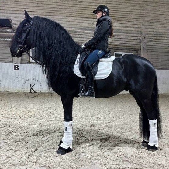 Жеребец. Фризской породы. Вороной масти. 172 см в холке. 2020 года рождения. Имеет элитное происхождение, родители - чемпионы Голландии. Импортирован из Голландии.