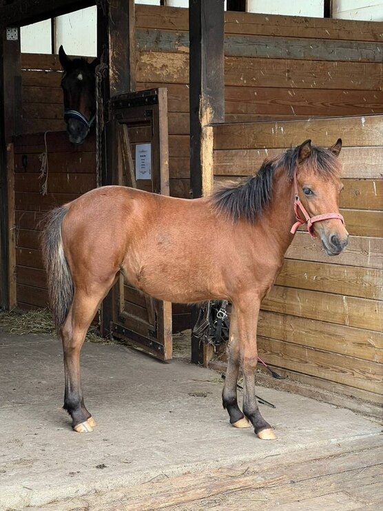 Оповожена, расчищается, гуляет в табуне, колется, знает недоуздок.