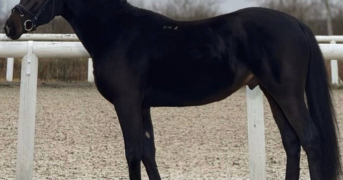 Жеребец. Орловской рысистой породы. Вороной масти. 163 см в холке, растет. 2022 года рождения.