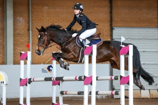 Стабильная опытная кобыла, стартовый опыт 105 см под любителем, всегда в призах. Дома связки 110 см.