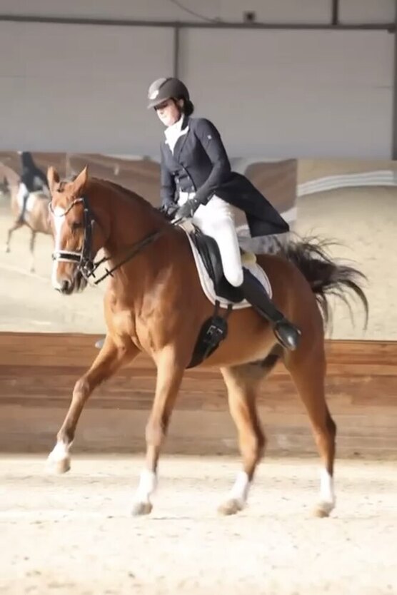 Шикарная молодая кобыла в выездку, отец KWPN - Paton NL 175 вх (Glocks Taminiau/Florencio), мать westf Solana 168 вх (Spielberg/Furst Piccolo), также в родословной Totilas, Donnerhall, Sandro Hit, Ehrentusch, Rubinstein. Элегантная изящная кобыла на супер движениях, нарядная, с замечательной психикой, ласковая, здорова!!! Немецкий паспорт в наличии. →