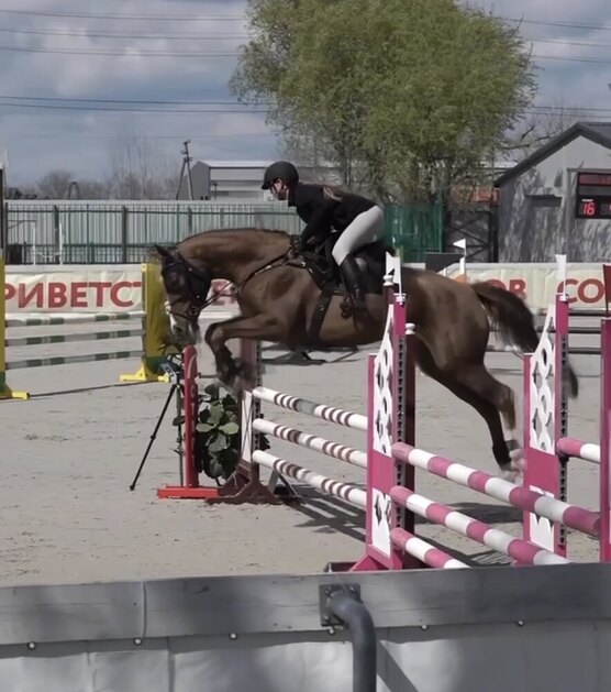 Перспективна в спорт. Маршруты на соревнованиях до 105 см. Подойдет под любого сидящего всадника. Сильная, хороший техничный прыжок.