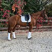 Перспективный, большой потенциал в спорт. Работает в выездковом направлении, стартовый опыт в ездах по молодым лошадям. Знает плечи, уступки, траверс и одиночную менку, начинает изучать принимания. Абсолютно безопасен, подойдет под любого сидящего всадника, в том числе ребенка. Отличная психика, флегматичный, ничего не боится, настоящий танк. Под седлом не играет, не высаживает, не боится встречных. Общительный, любит людей, обожает вкусняшки. Быстро учится новому. На новых площадках ведет себя адекватно.