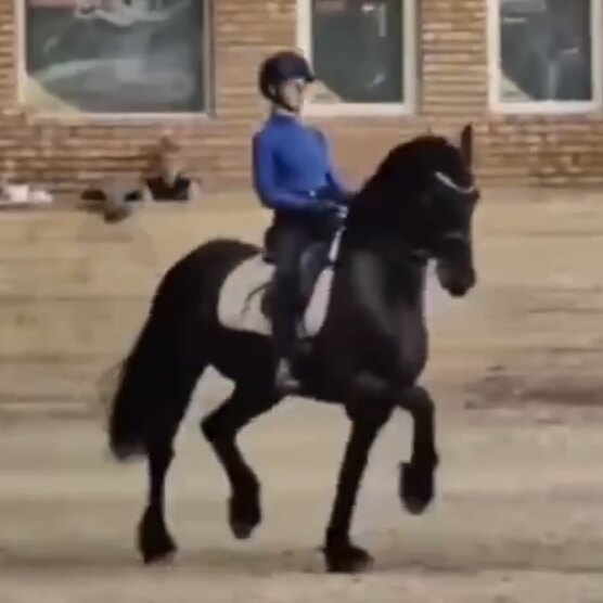 Мерин. Фризской породы. Вороной масти. 166 см в холке. 2014 года рождения.