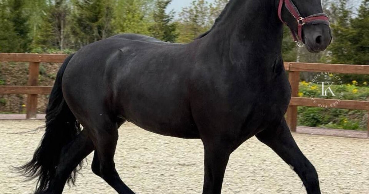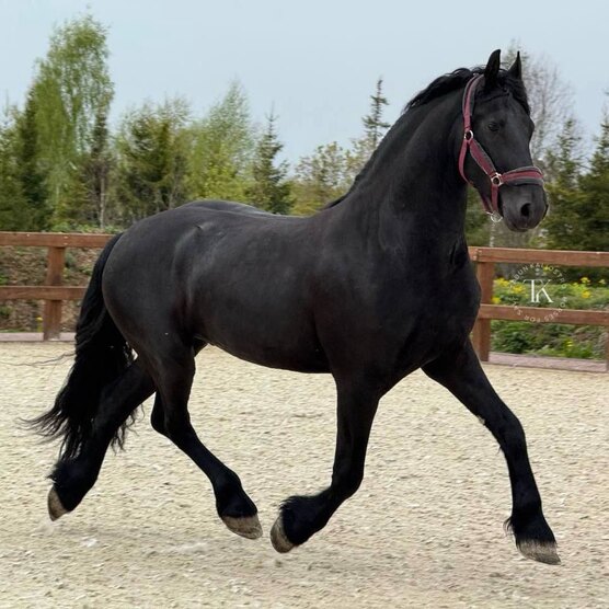 Мерин. Фризской породы. Вороной масти. 161 см в холке. 2021 года рождения.