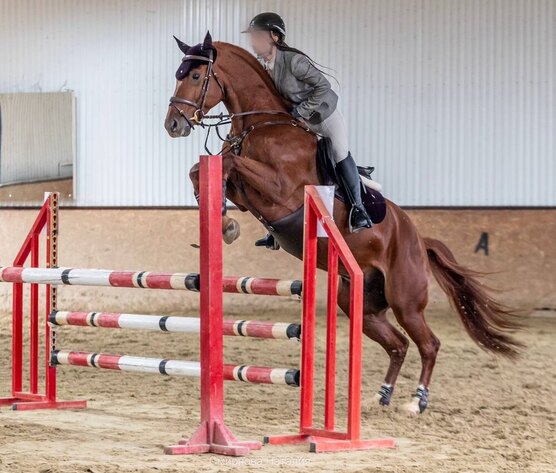 В активном конкурном тренинге под берейтором и любителем. Стартовый опыт до 100 см. Напрыган до 130 см под всадником, шпринт до 150 см.