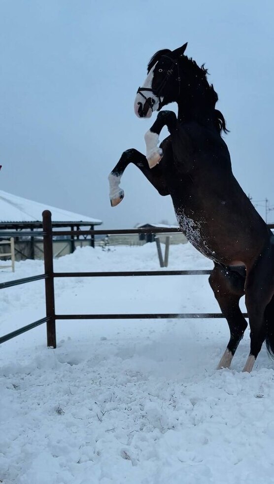 Конь поздней заездки. Работается в конкур. Под верхом полностью адекватен, в руках может погугукать, проходя мимо лошадей.
