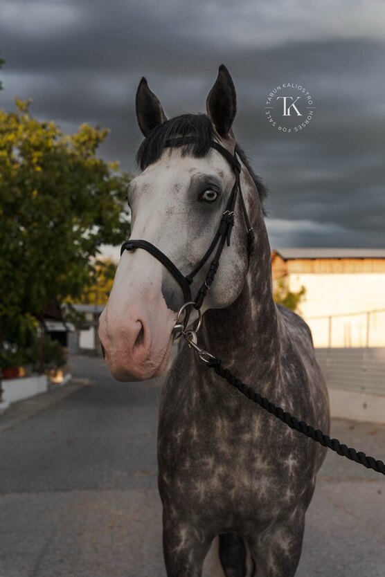 Жеребец. Полукровной породы. Серой масти. 172 см в холке. 2020 года рождения. Отец - Cassini II.