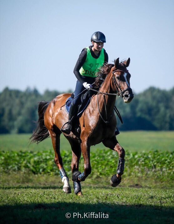 Имеет стартовый опыт в конкуре до 100 см, также стартовала в троеборье ДК90.
